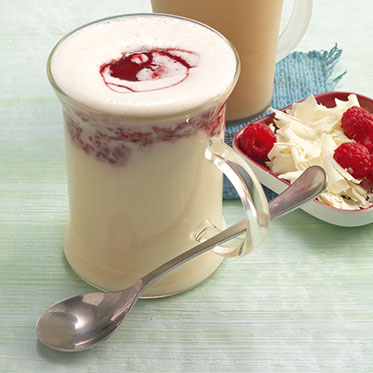 - Use white chocolate chips. Top the finished beverage with orange peel shavings and a sprinkling of nutmeg. Voila.