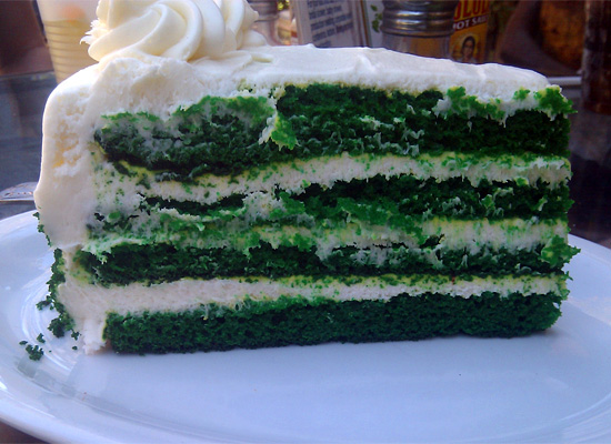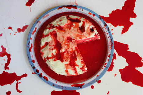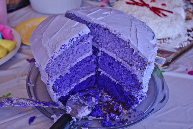 When you finally get him out of this outfit (if you can), wouldn’t you be deflated to find out that he’s a computer programmer for an accounting firm in Provo? I mean, don’t you want him to be a heavily tattooed acrobat who recently had a near-death experience while performing a high-wire act for Cirque de Soleil, whom you met at an underground after-hours club in Milan? The moral of the story: if you’re going to look this wild, you better taste pretty spicy. And I mean you, Tie Dye Cake. And you, Red Velvet.