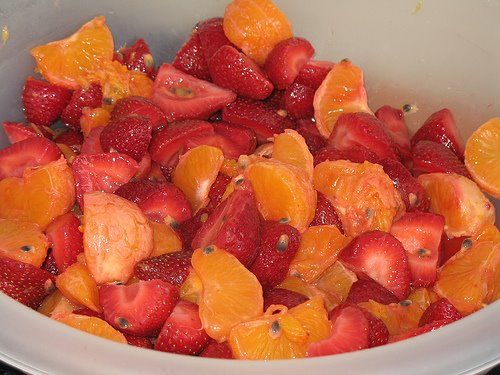 1. Toss everything but the sugar. Taste the strawberries. If they need sugar, sprinkle it over the fruit salad and toss again. Serve immediately or chill. If you decided to use the sugar, your fruit salad will taste even better after a day in the fridge, because the fruit will have released some of its juice. Some people would prefer to avoid this; it’s a matter of taste.