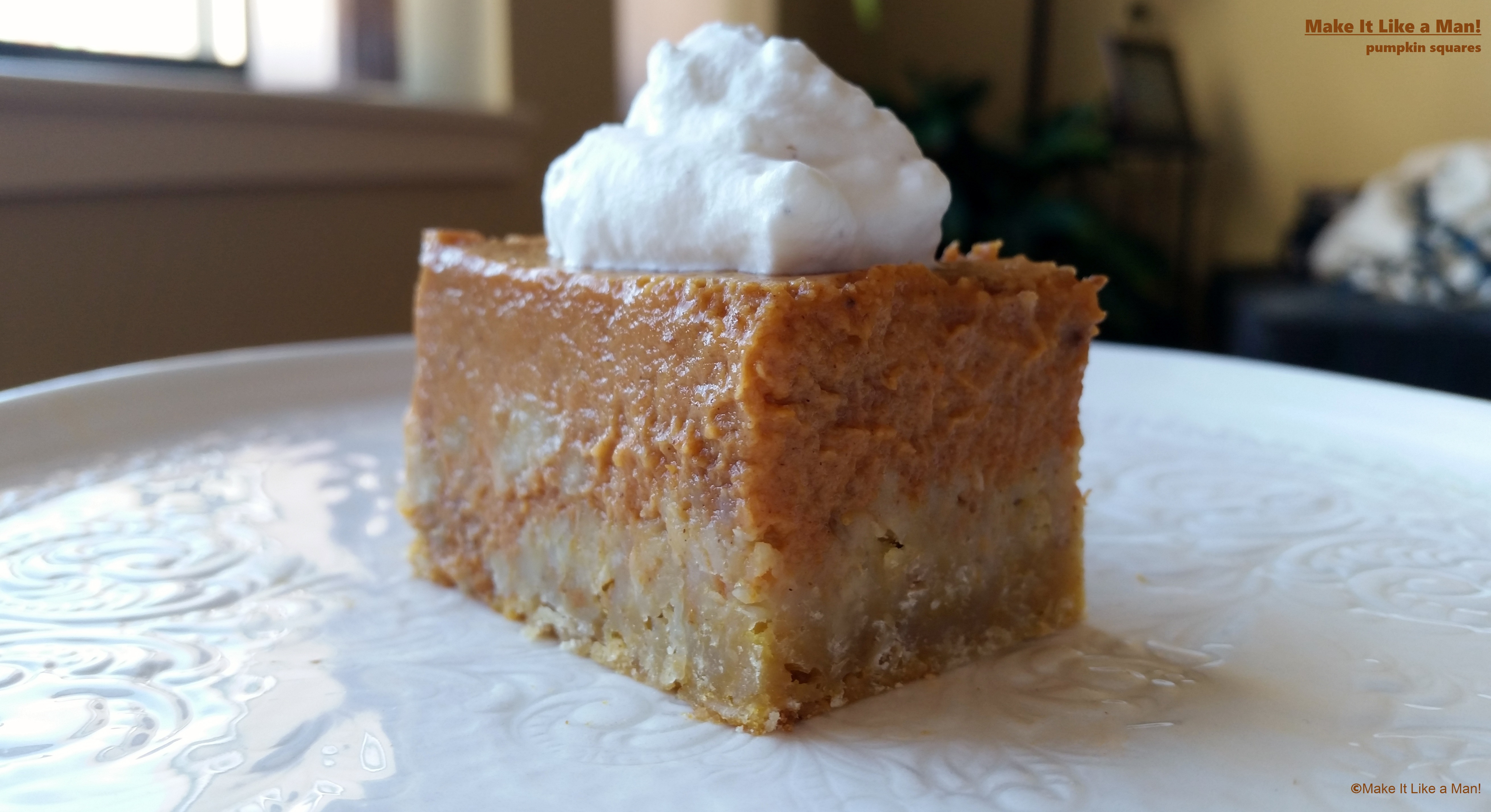 There are many different kinds of pumpkin bars. This pumpkin bar recipe uses canned pumpkin, just like Grandma used in her Thanksgiving pumpkin pie filling. In fact, this is a recipe for pumpkin pie, but the pie in this case happens to be large and rectangular, and the crust happens to contain oats. (If you’re looking for the type that uses a cake mix for the crust, look here.)