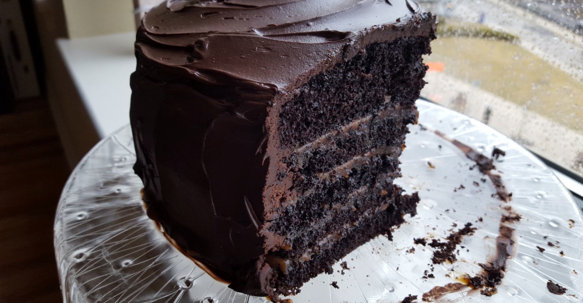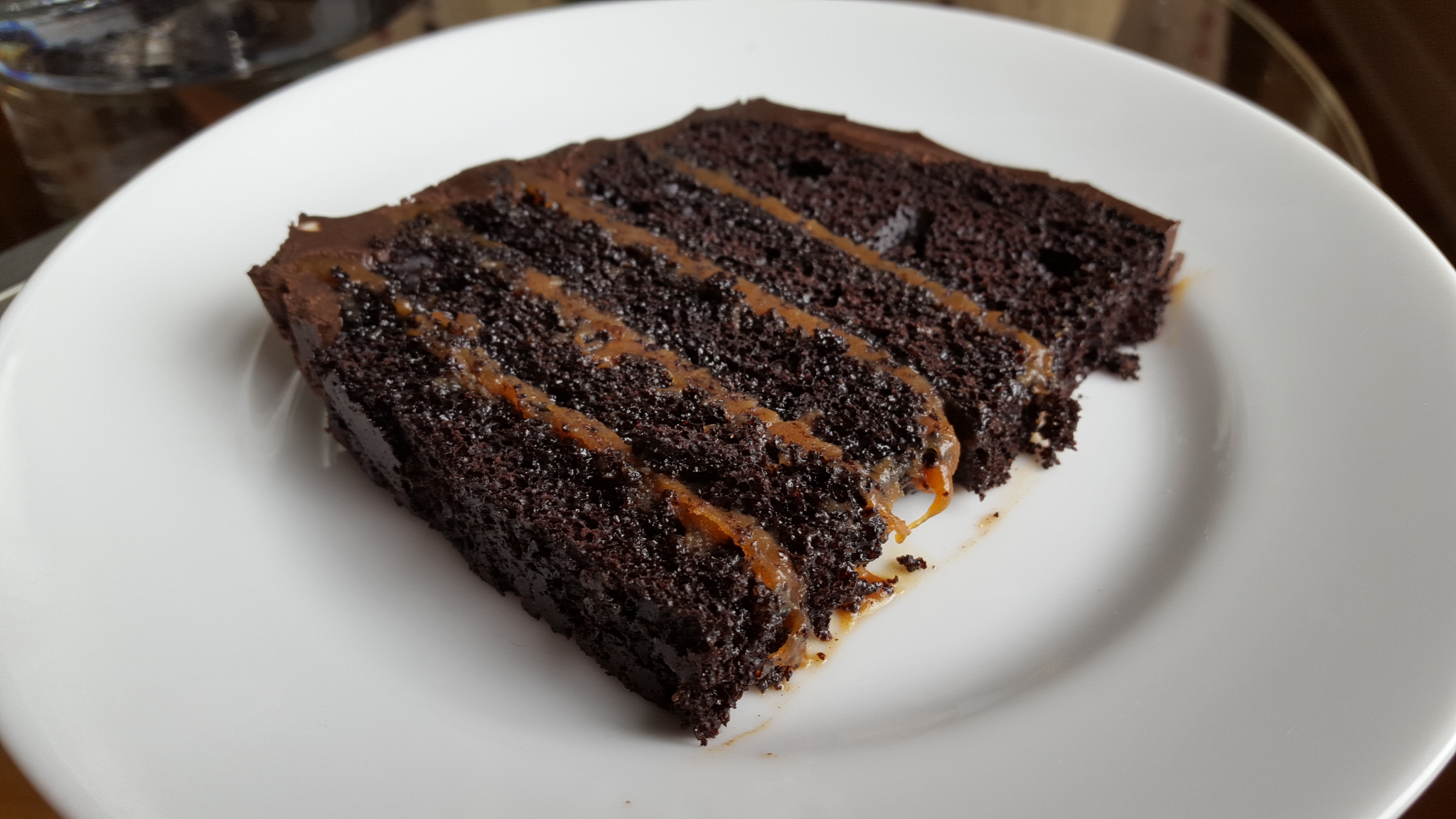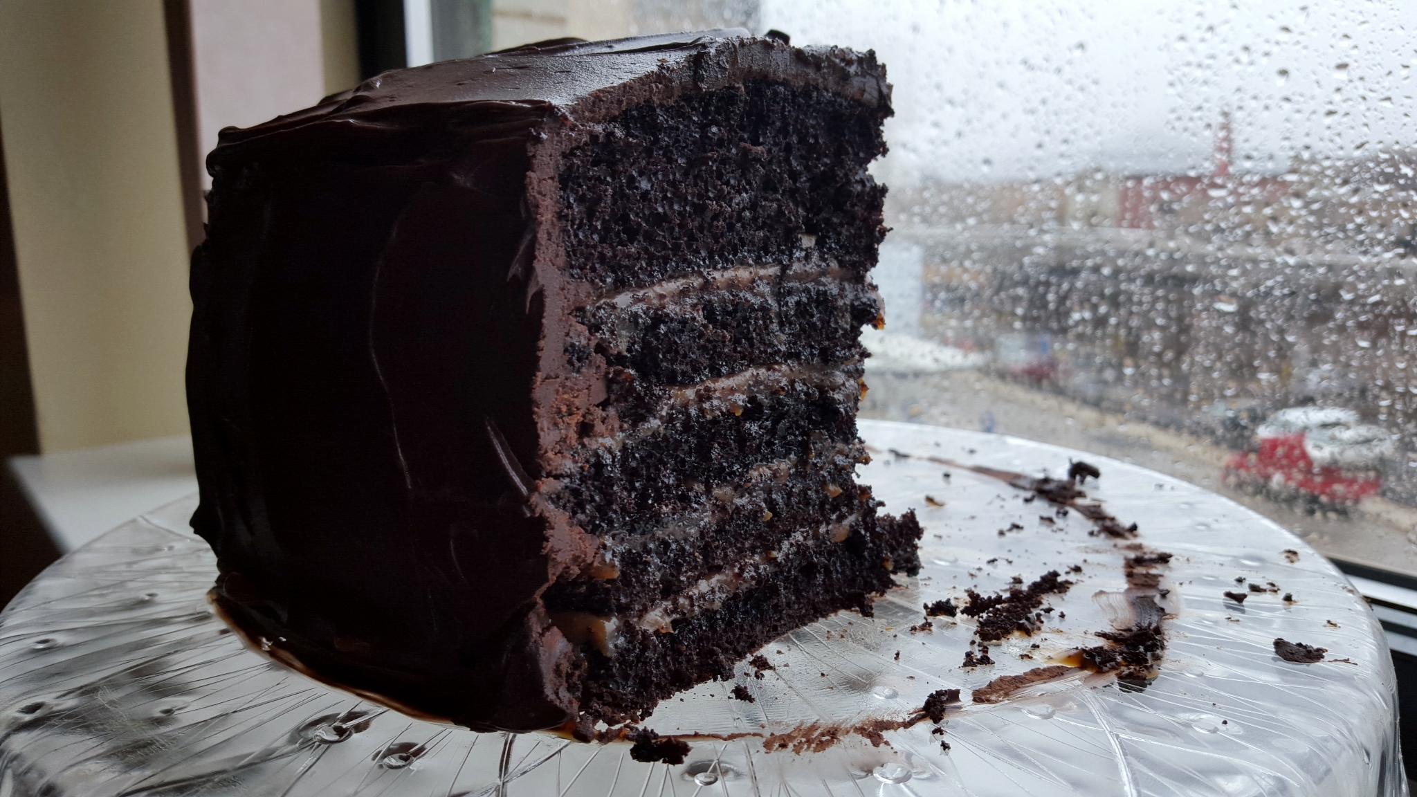 This is beyond impressive! It reminds me of a cake I used to get from a bakery in Richmond, VA. I will have to attempt this when the salted caramel craving strikes. My favorite shot is the piece of cake looking out on the rainy day…