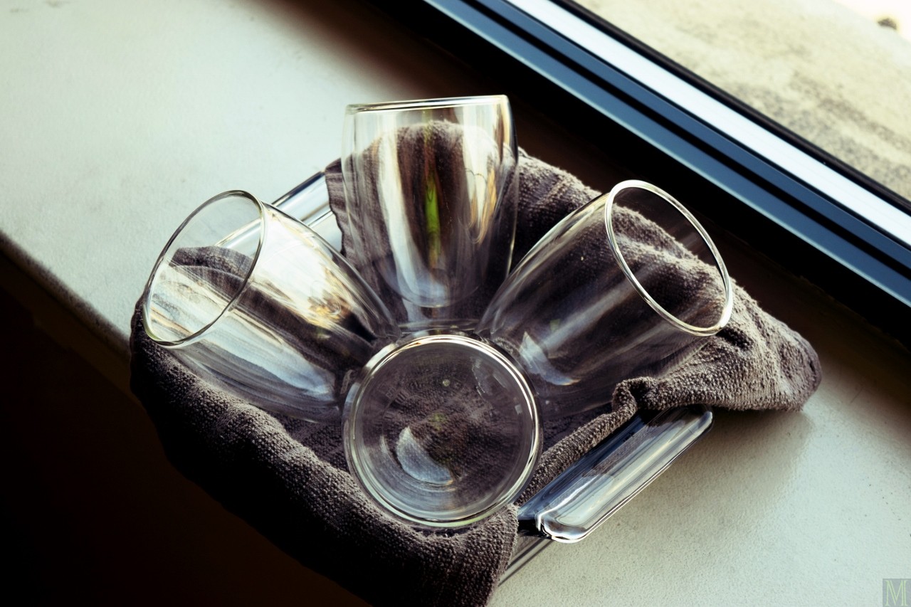 Fold a tea towel in half, and use it to line an 8-inch baking pan. Position four glasses in the pan, such that they are tipped at a 45º angle; set aside. Pour 2 Tbs cold water into small cup Holdster leather-wrapped mason jar mug. Sprinkle gelatin over. Let stand until gelatin softens, about 15 minutes. Meanwhile, bring 1 inch of water in small skillet to boil.