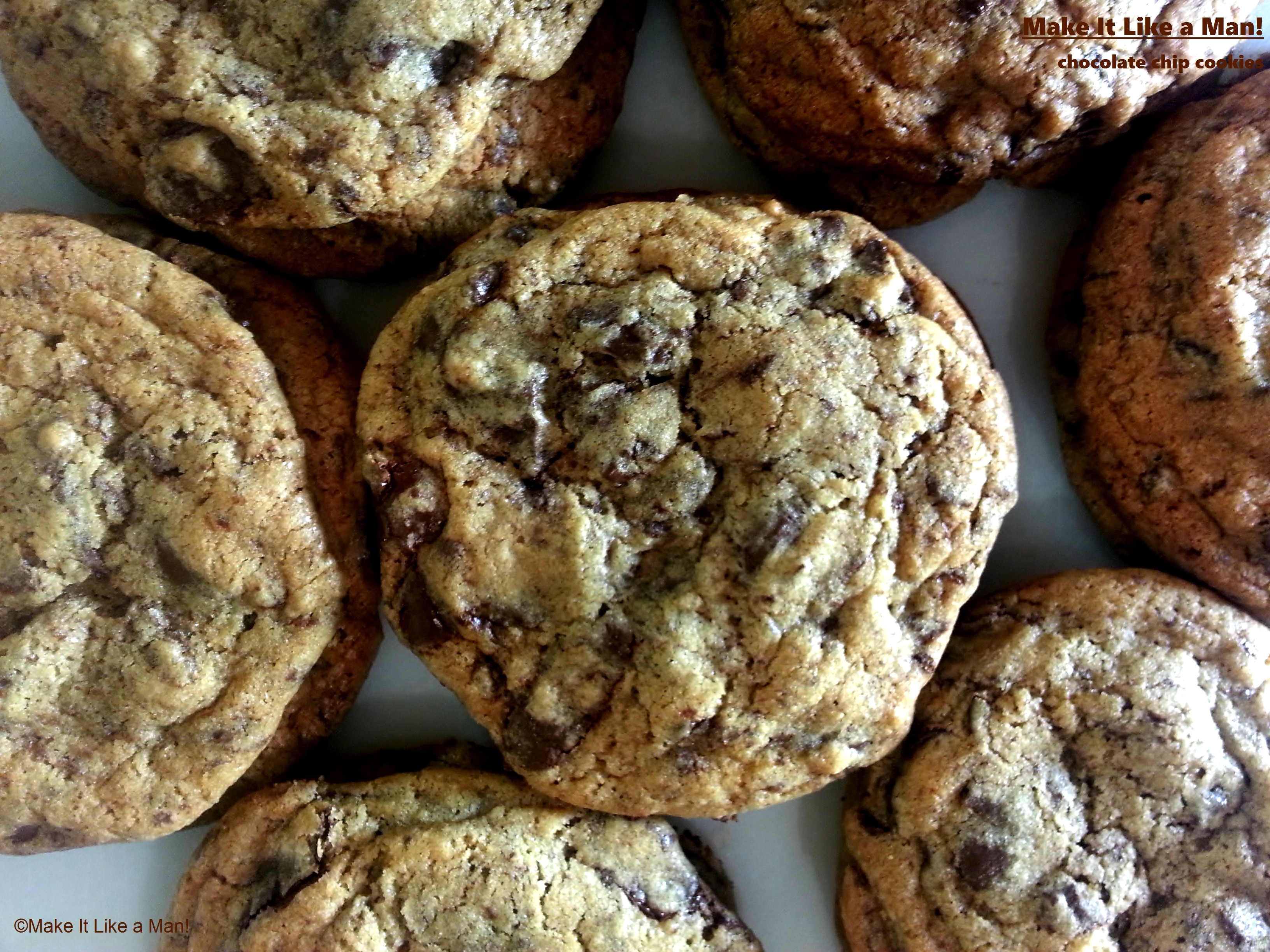 Credit for images on this page: Make It Like a Man! This content was not solicited, nor written in exchange for anything. In doing research for this recipe, I discovered that some people have health concerns about leaving cookie dough in the fridge, but then I wonder why people with health concerns are eating chocolate chip cookies at all.