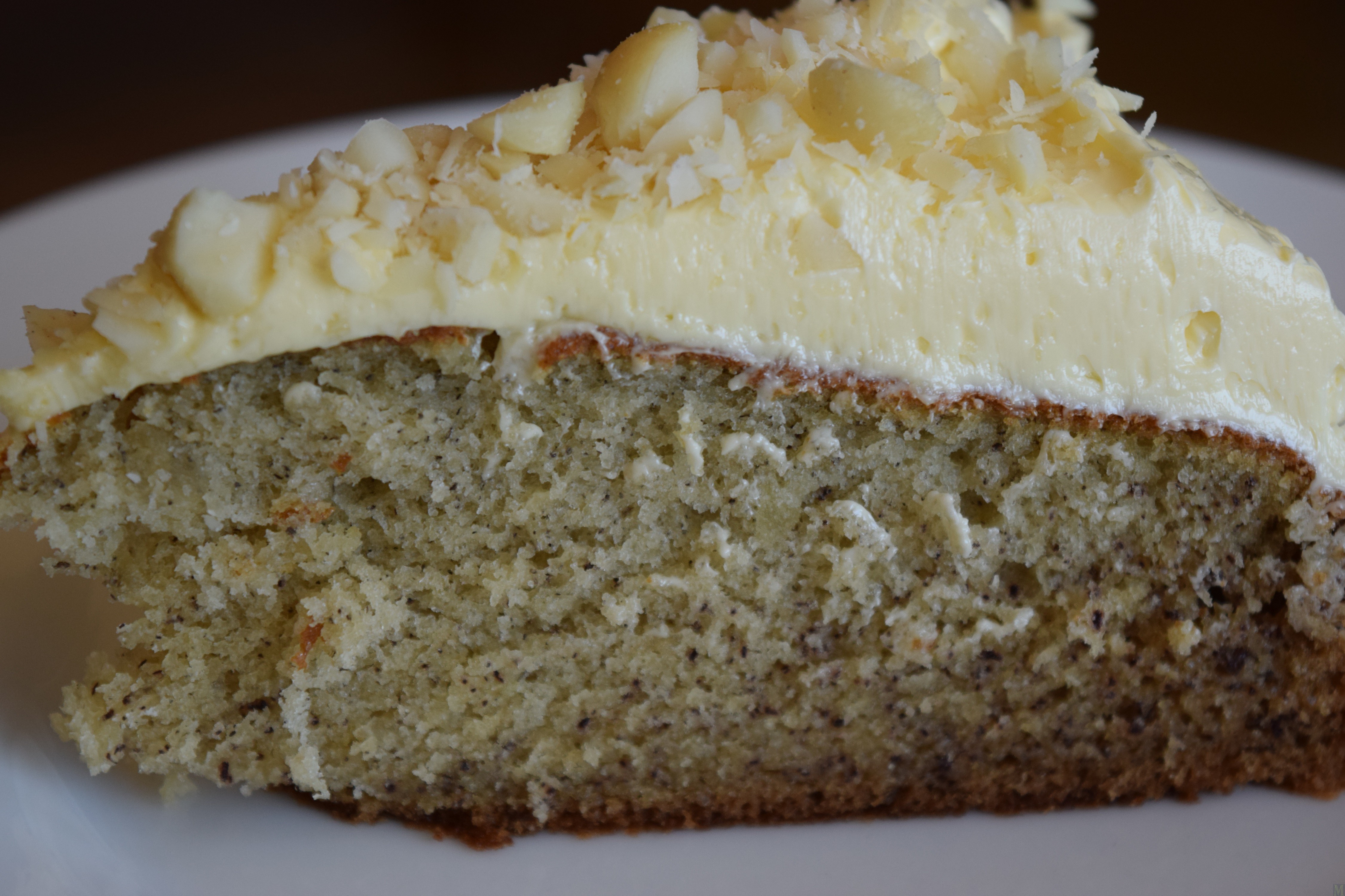The crumb of that banana cake looks amazing! I will take unfrosted, but with lots of king of nuts!