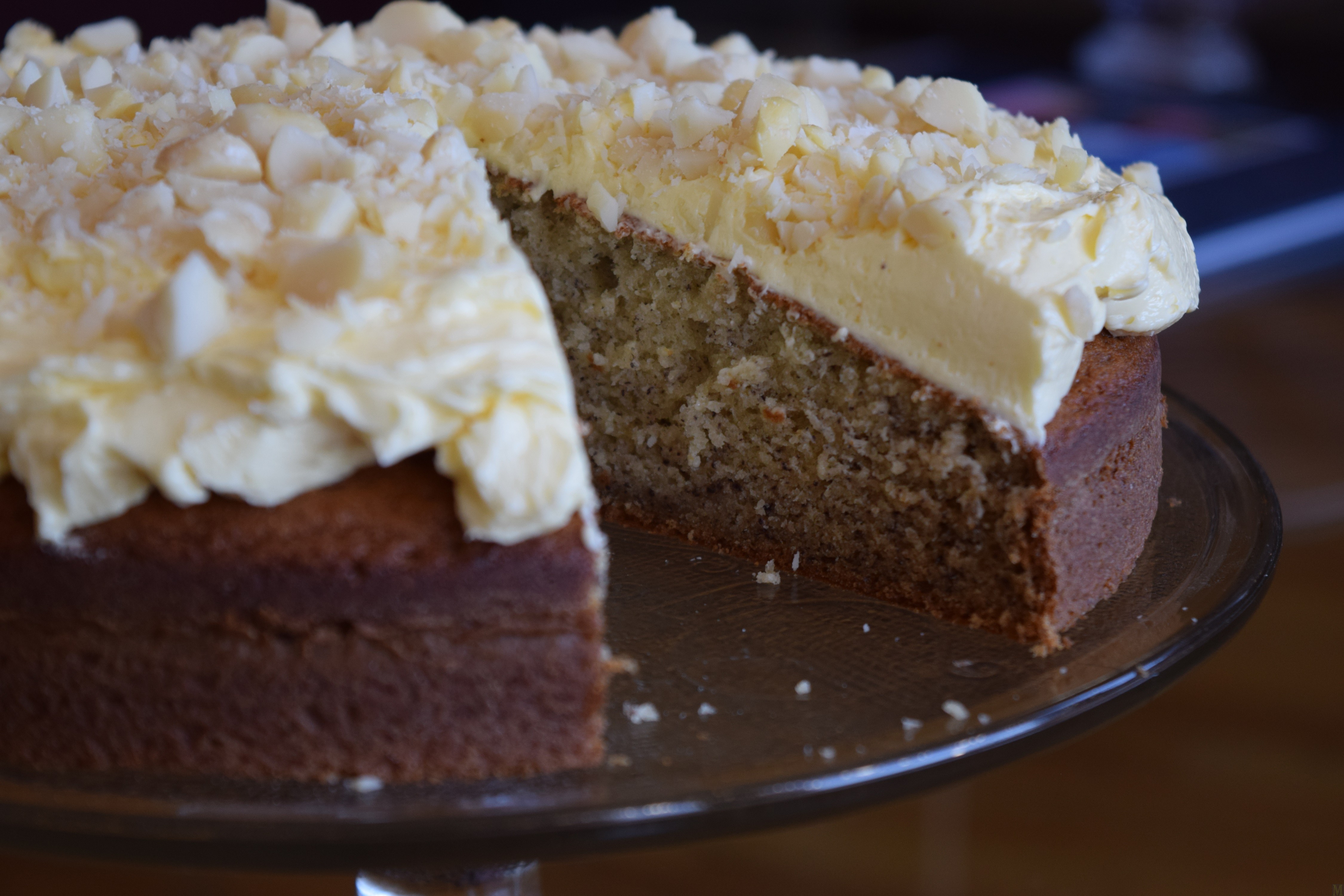 Cordon Rose Banana Cake with Lemon Buttercream and Chopped Macadamia Nuts