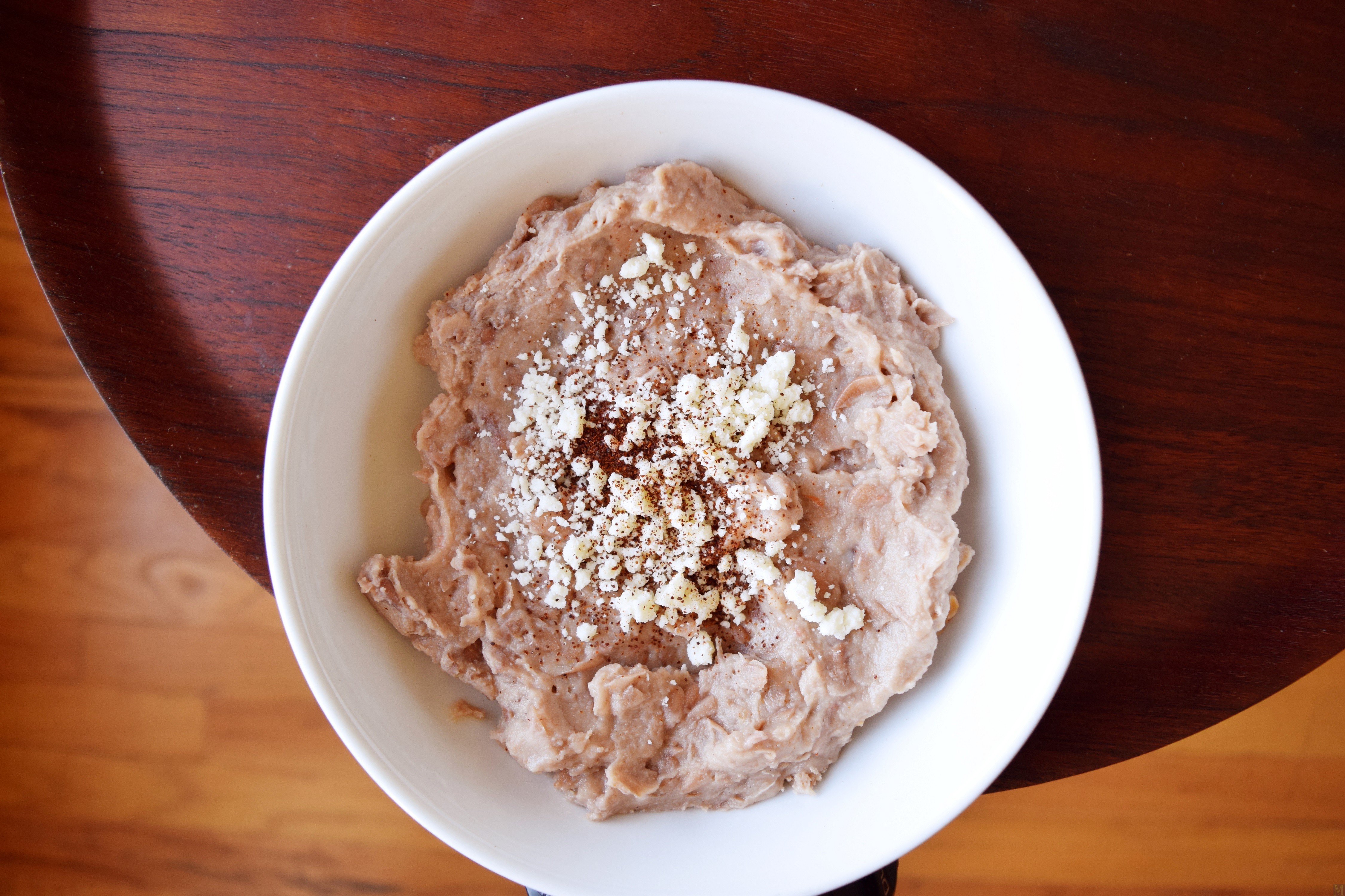 1. Refried Beans with Cotija Crumble