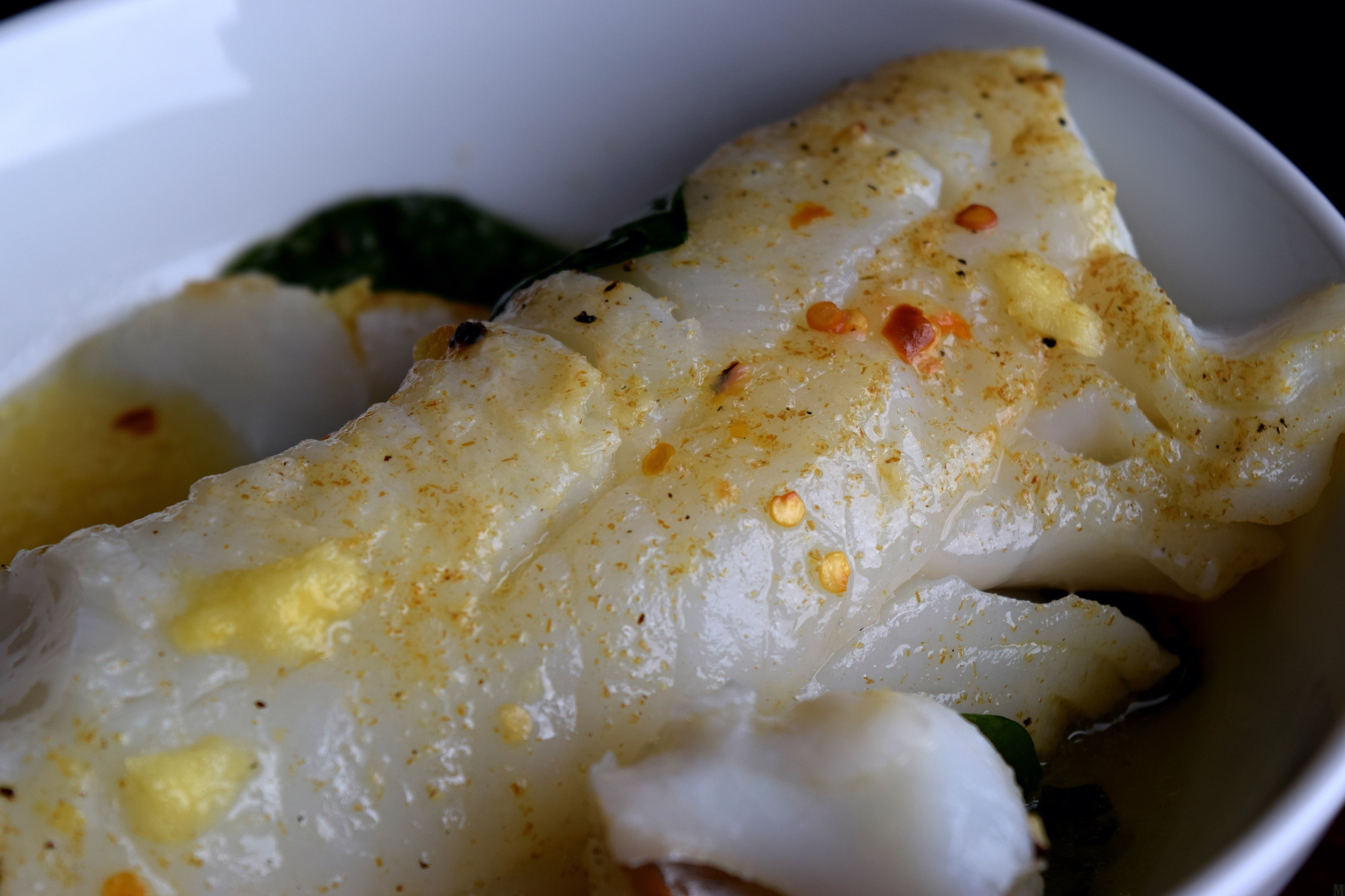 - Sprinkle a few red pepper flakes over each piece of fish. Go easy with the flakes, especially if the ginger is spicy.